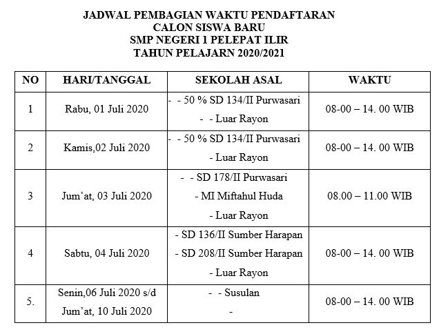 INFORMASI PPDB 2020/2021 SMPN 1 PELEPAT ILIR